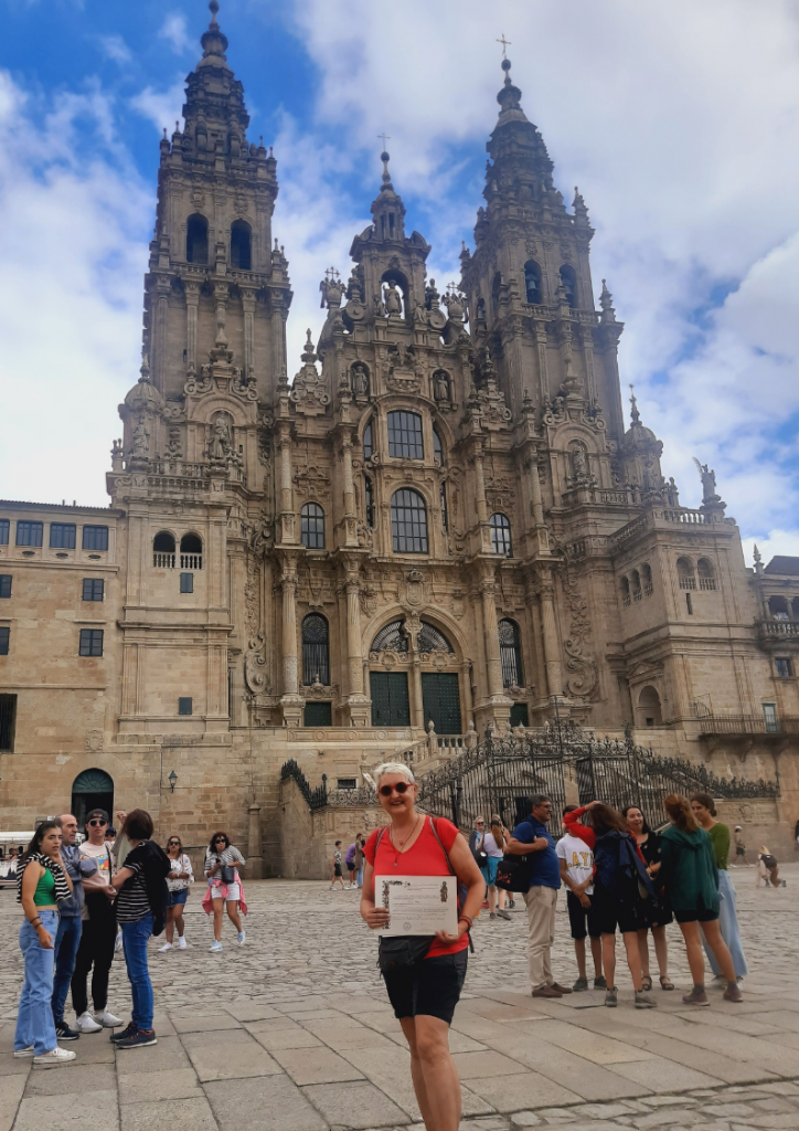 Für jeden Pilger ist der emotionale Höhepunkt die Ankunft in Santiago de Compostela. Nach all den Schritten, Strapatzen, den Blasen an den Füßen, der Stille, dem Lärm im Kopf und den inneren Auseinandersetzungen tauchen plötzlich die Türme der Kathedrale auf. Dieser erste Anblick lässt die Tränen der Freude, des Stolzes und der Erleichterung fließen. Egal wie oft ich den Weg gelaufen bin, es ist jedes Mal ein ergreifender Moment. Spätestens hier kommt mir der Spruch in den Sinn: „Der Schmerz geht, der Stolz bleibt.“