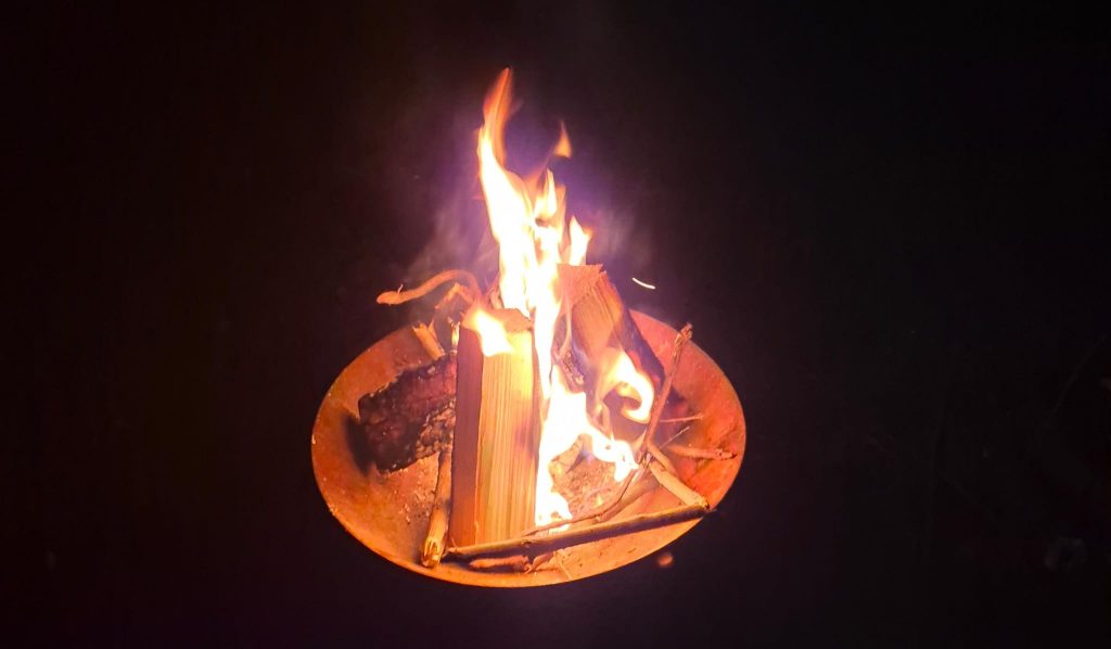 Das Feuer ist das Symbol der Sonne und der Wiedergeburt. Egal ob in einer Feuerschale draußen (wie ich gestern) oder symbolisch mit einer Kerze: Das Feuer hilft bei der Transformation. Schreibe auf Zettel, was du loslassen möchtest, und übergib es dem Feuer, um es symbolisch zu transformieren. Wenn du einen Balkon hast, dann kannst du das in einem Feuerfesten Gefäß machen, ein alter Topf tut es auch.