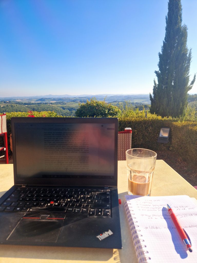 Natürlich mussten wir auch Pisa besuchen und ich nutze die Zeit und Sonne, um an meinem Buch und an Seminarkonzepte zu schreiben.