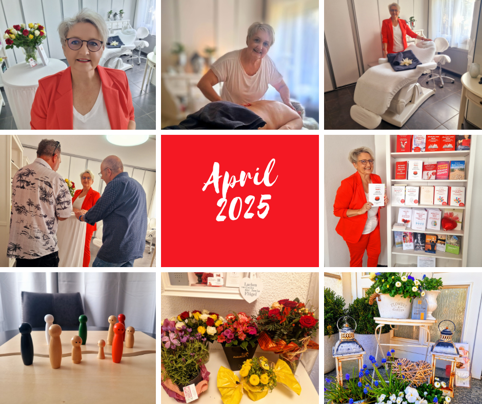 - Mai: Der Garten hat mich fest im Griff, die zarten Pflänzchen gedeihen, so wie meine Seminare und Coachings immer mehr.