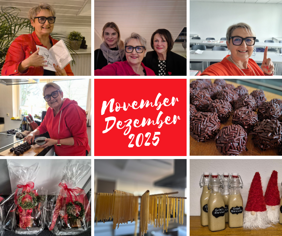 - Nach so schönen und auch wieder stressigen Phasen, nehme ich mir eine Auszeit in der Küche. Ich backe, mache Nudeln, Schokopralinen, Eierlikör usw…. Das beruhigt mich und mein Nervensystem und es fühlt sich für mich nach der reinsten Meditation an. Und gleiczeitig habe und hatte ich so die schönsten Weihnachtsgeschenke…. Die übrigens alle super ankamen.